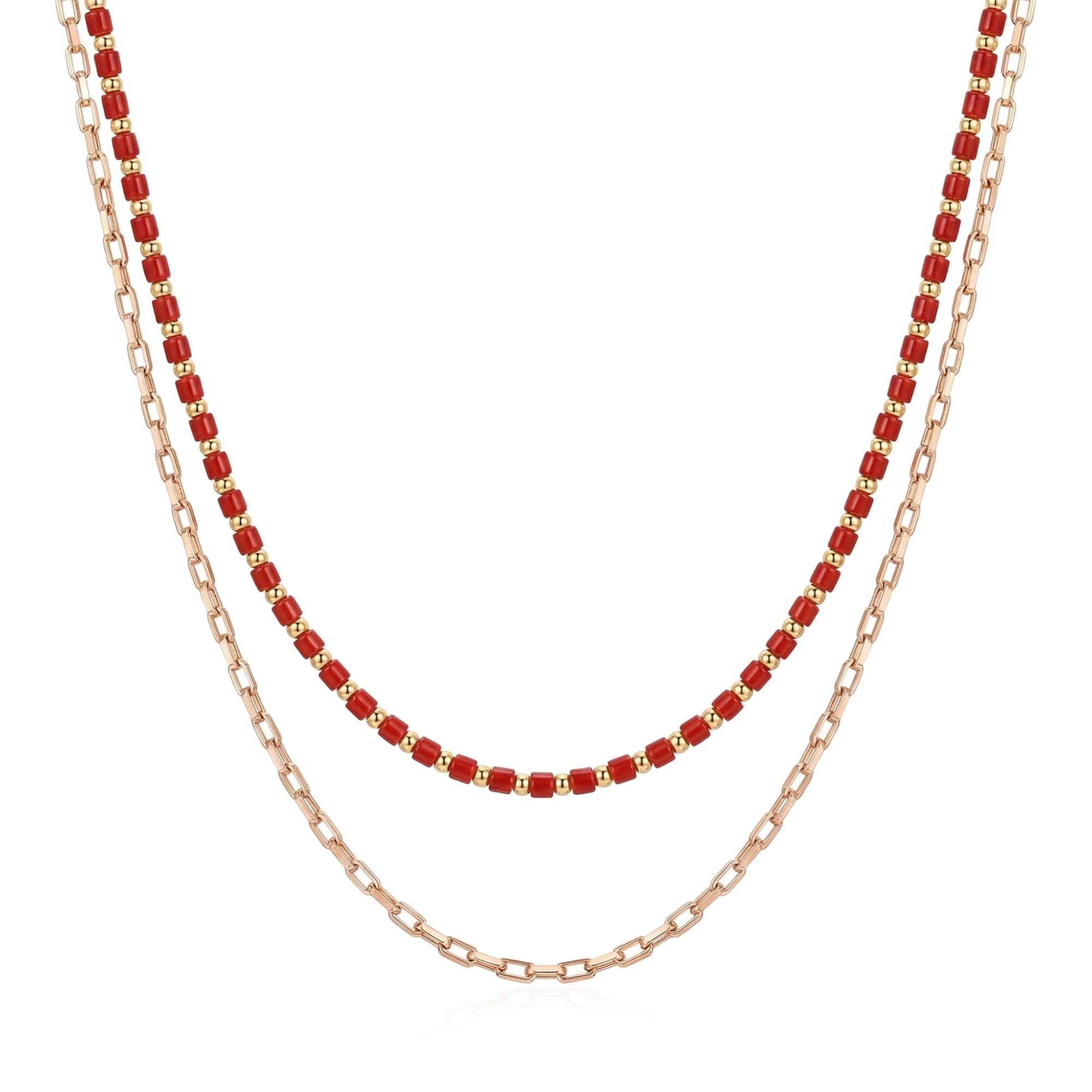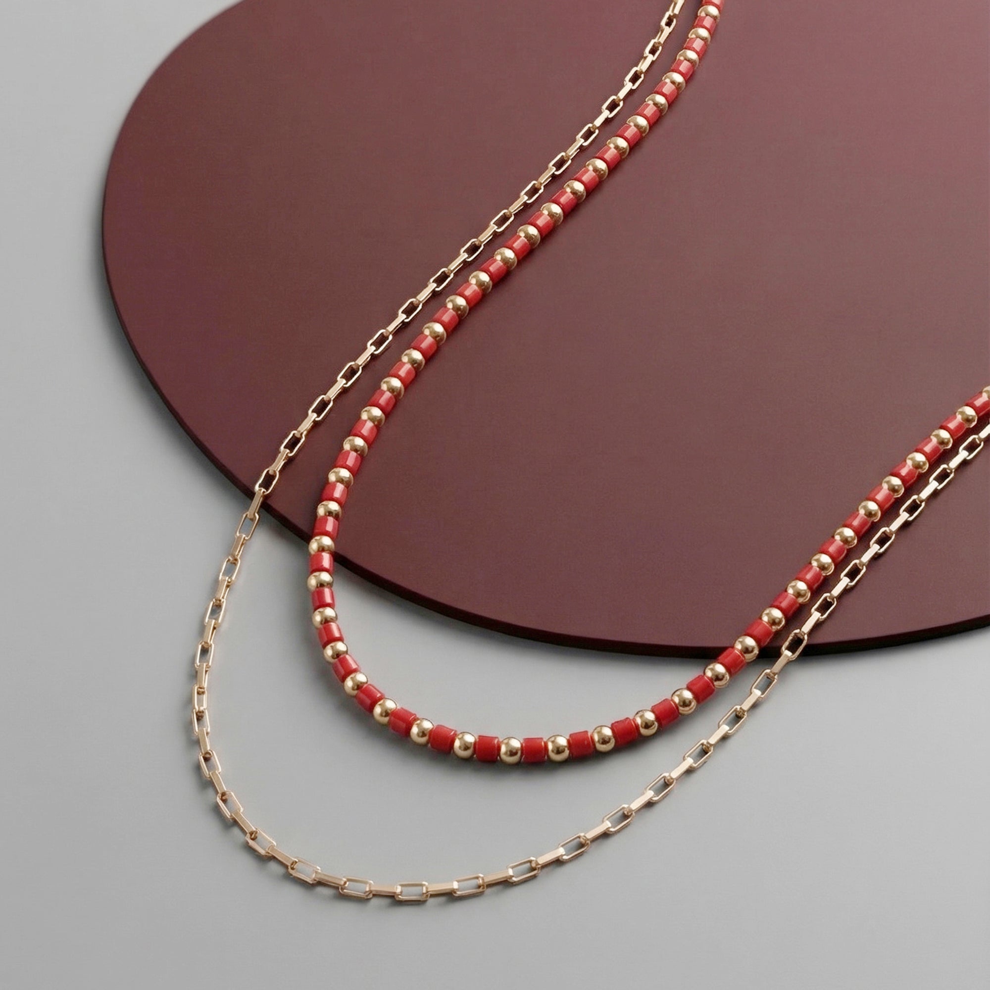 Red Beaded Layered Necklace