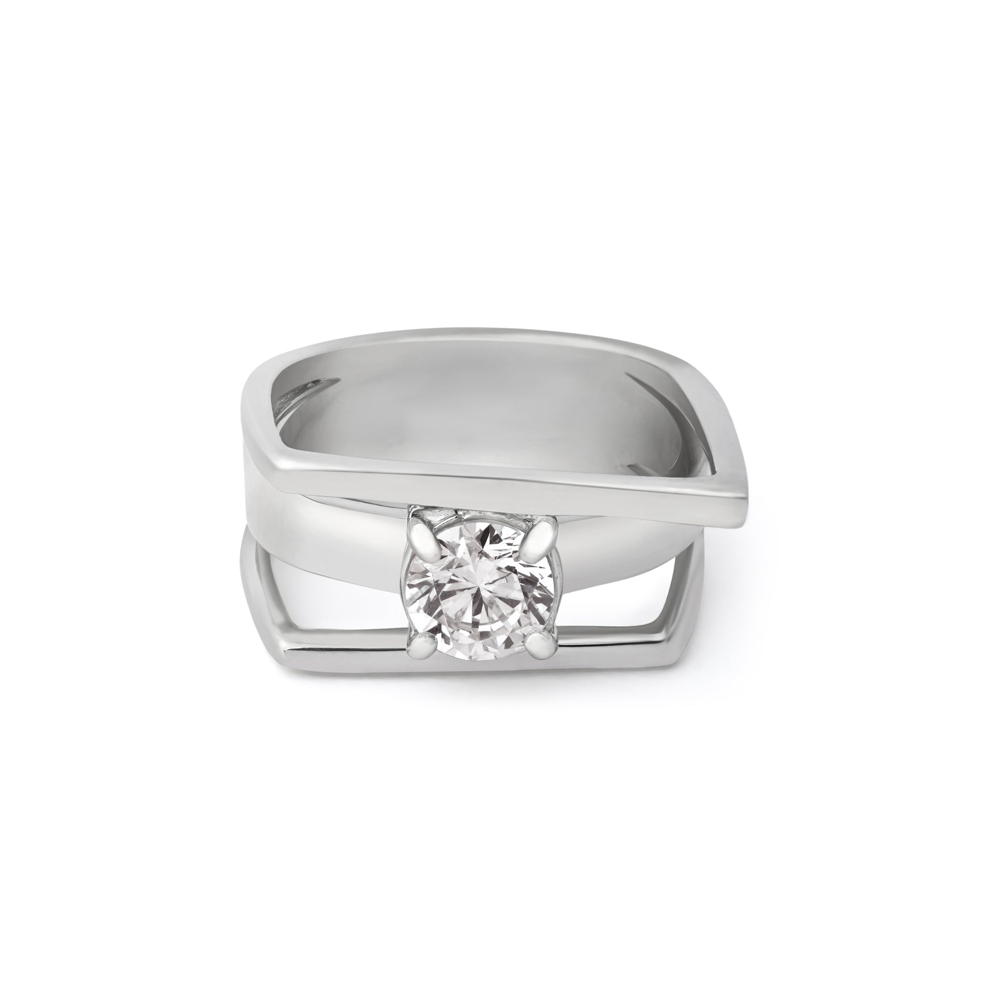A sleek and modern design featuring sparkling crystals in pure 92.5 silver. This versatile piece from our ladies' silver ring collection is perfect for adding sophisticated glamour to various occasions, ensuring you shine with elegance.