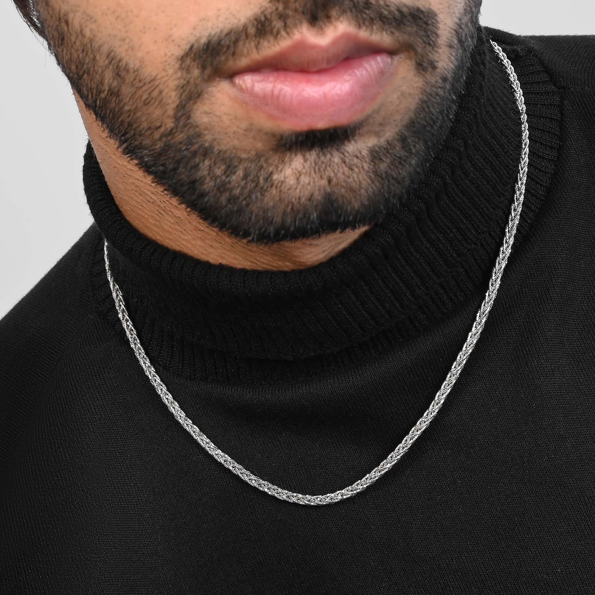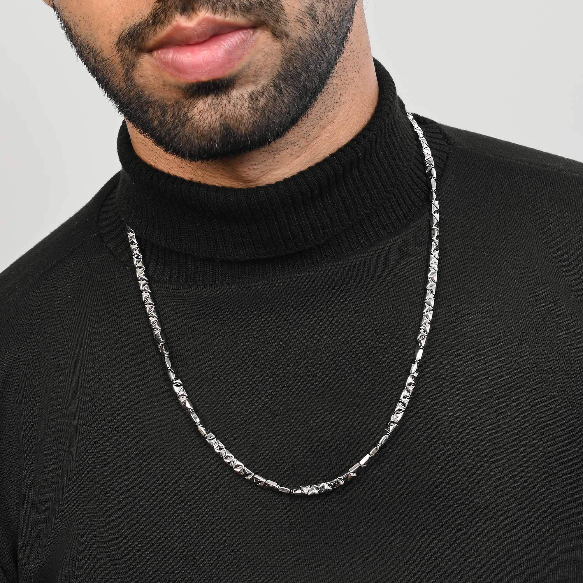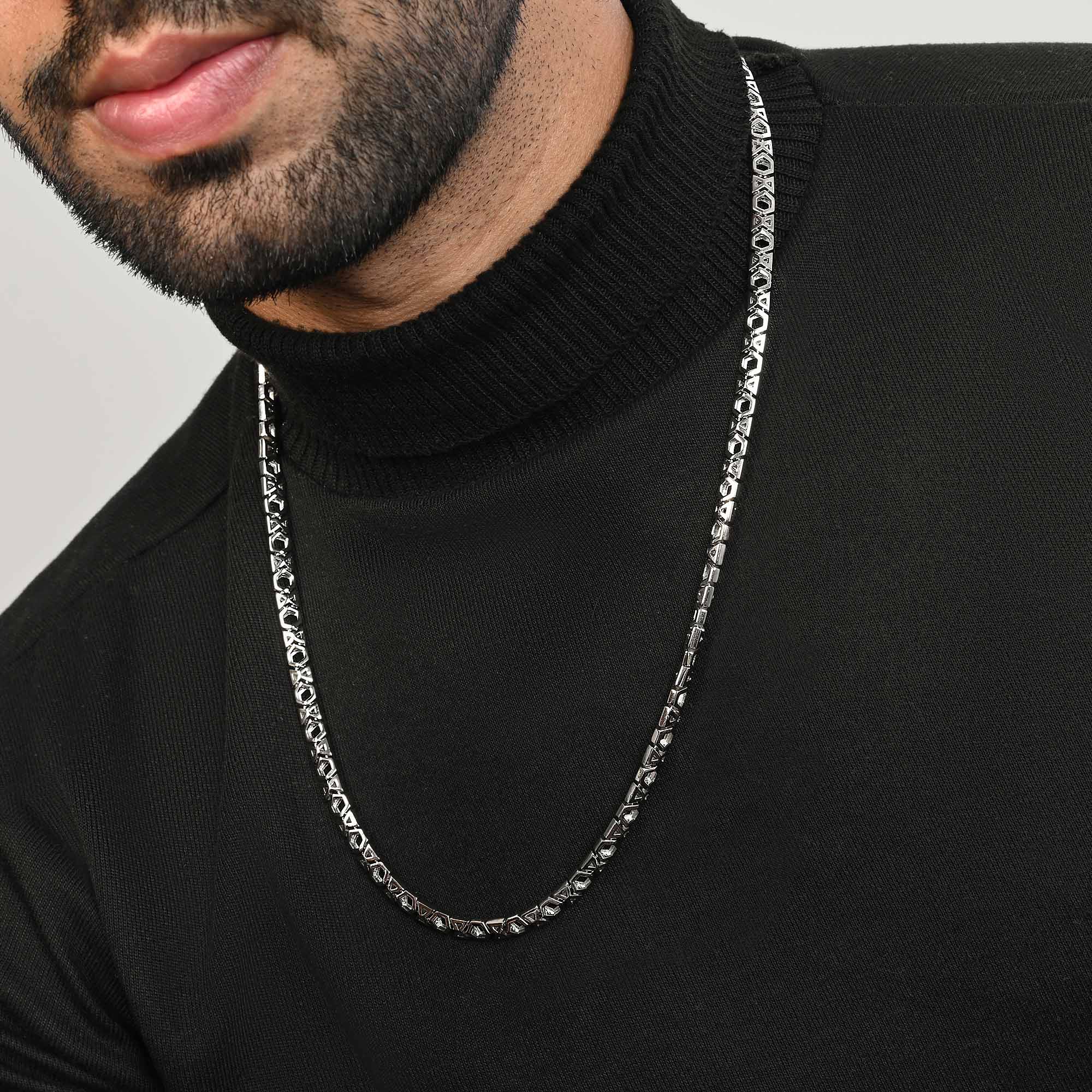 A.: Our men's silver jewellery collection is crafted from premium 92.5 silver, ensuring both quality and durability. Each piece is designed with men's style and preferences in mind, offering trendy accessories that elevate any outfit effortlessly.