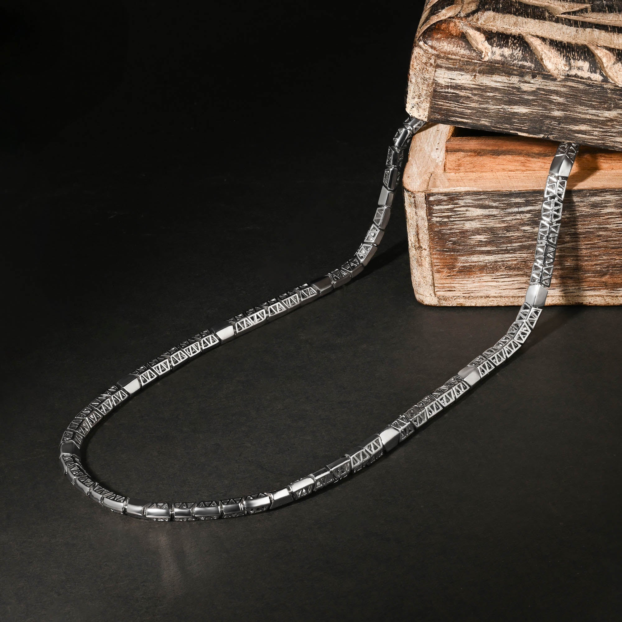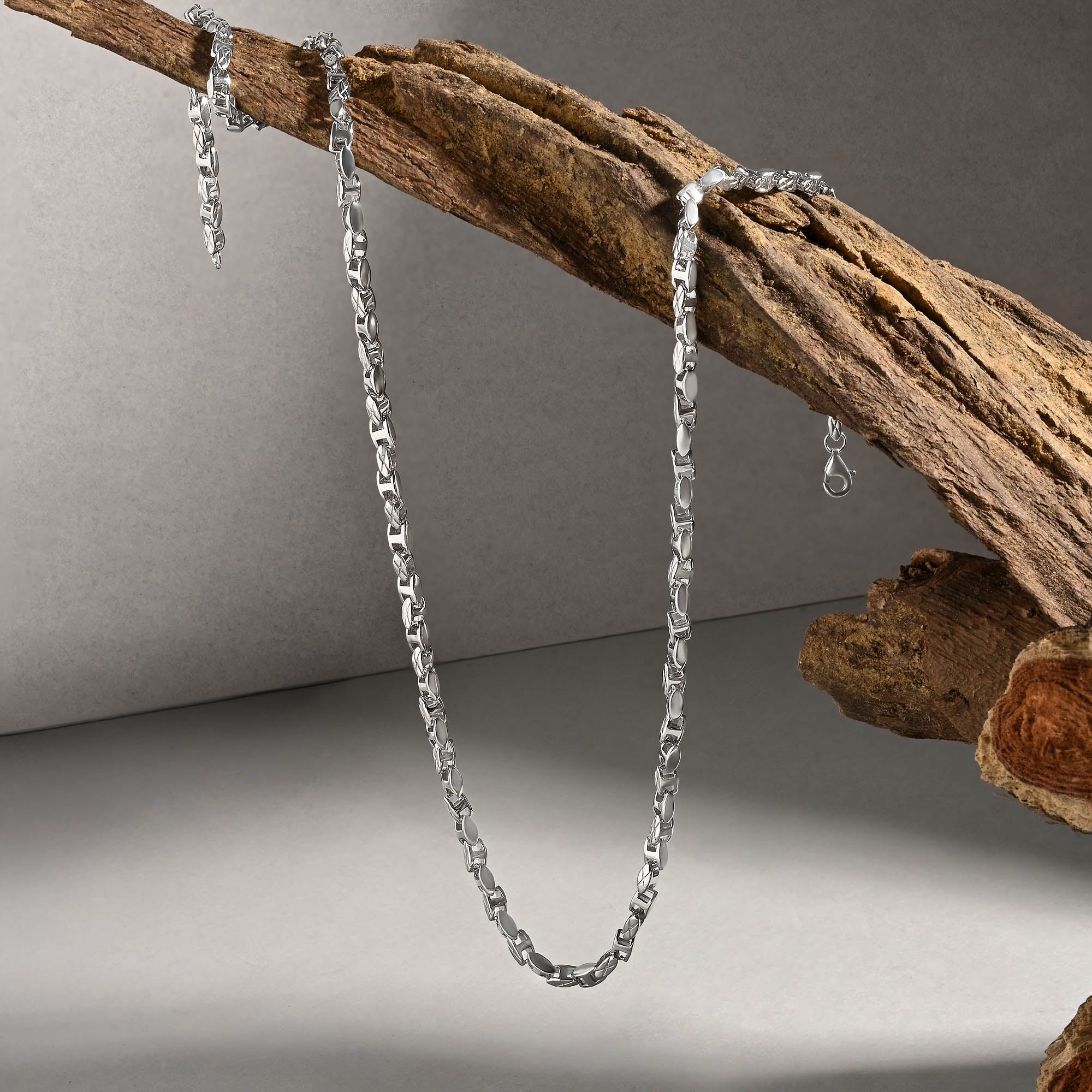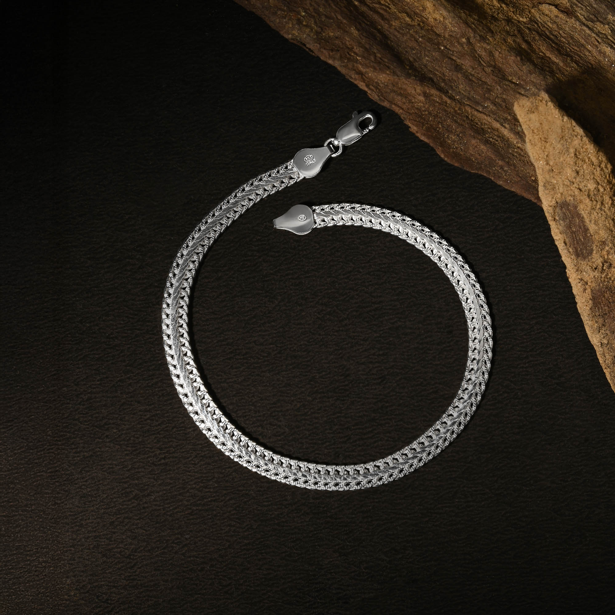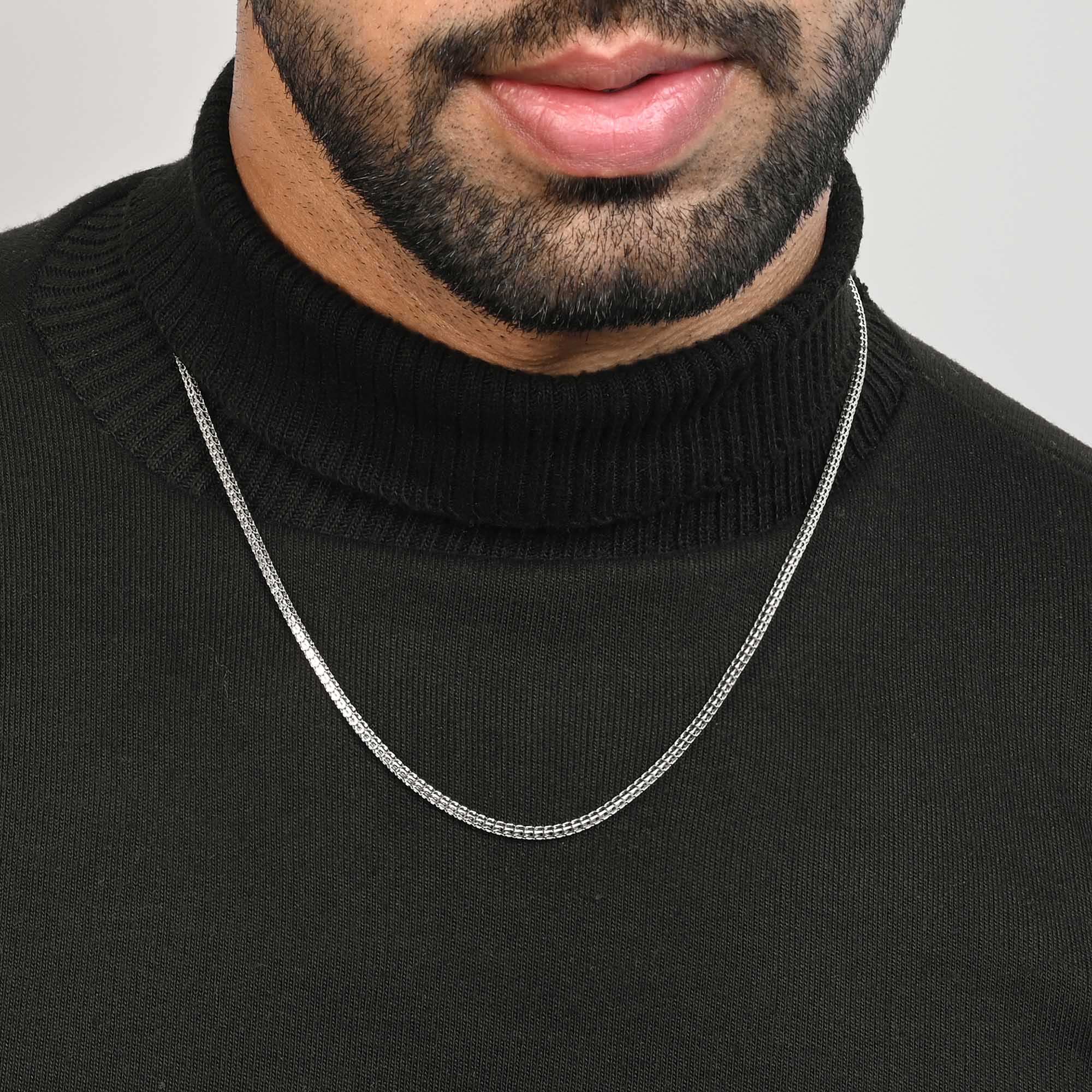 A.: Our men's silver jewellery collection is crafted from premium 92.5 silver, ensuring both quality and durability. Each piece is designed with men's style and preferences in mind, offering trendy accessories that elevate any outfit effortlessly.