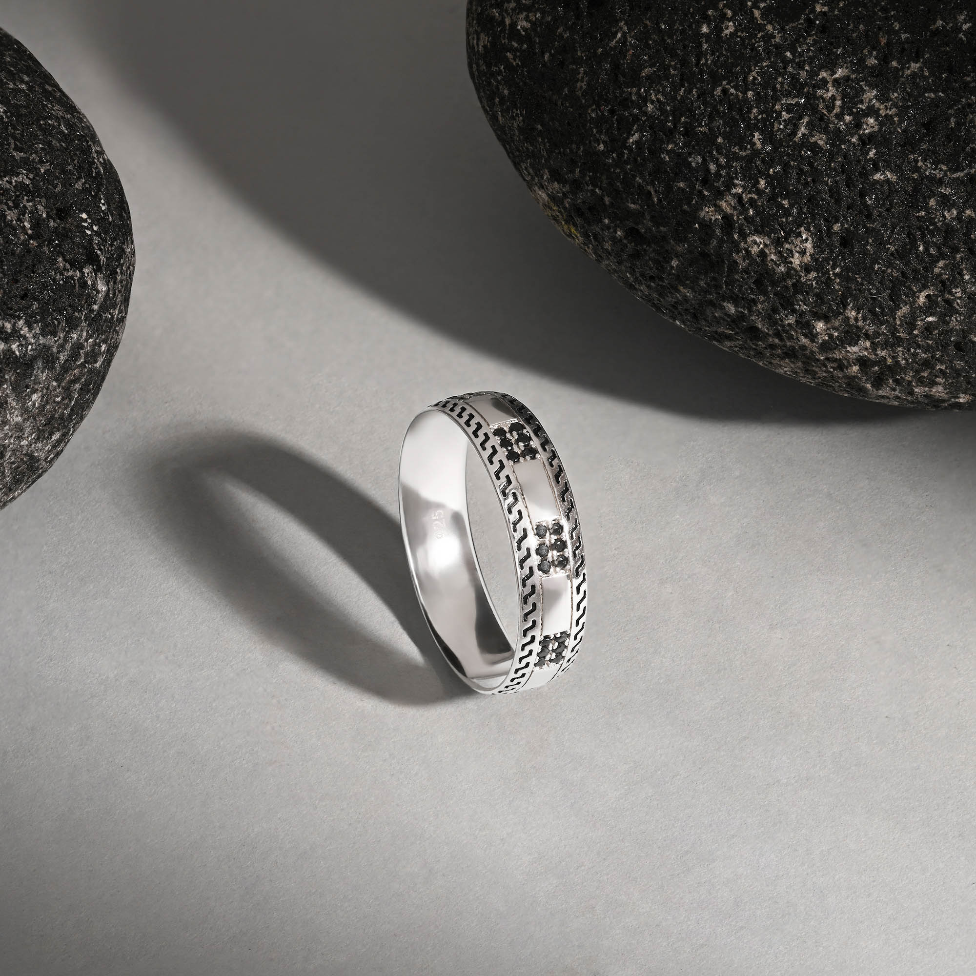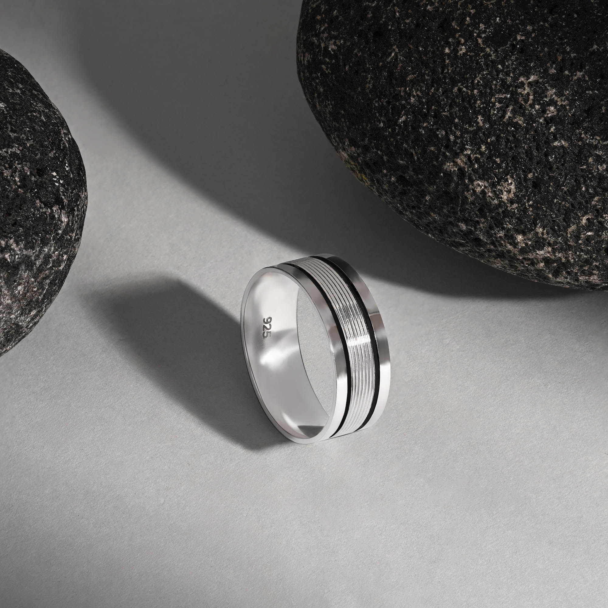 A.: Our men's jewellery is made from 92.5 silver, also known as sterling silver. This high-quality silver alloy consists of 92.5 silver.
